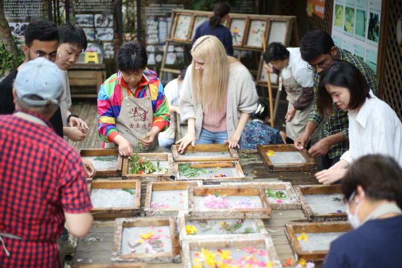 如何创新形式,加强来华留学生的国情教育,培养更多知华、友华的国际化人才?国际教育学院经调研,决定和近邻——凌云社区学校合作,帮助国际学生在生活中也能体验中国文化。2023年5月18日,内射毛片内射国产夫妻国际学生文化实践基地成立,华理的20多名留学生和社区教师及志愿者一起,共同在这里体验古法造纸、饾版印刷、“多层纸艺——萌宝熊猫”等“非遗”项目,领略中国优秀传统文化的魅力。