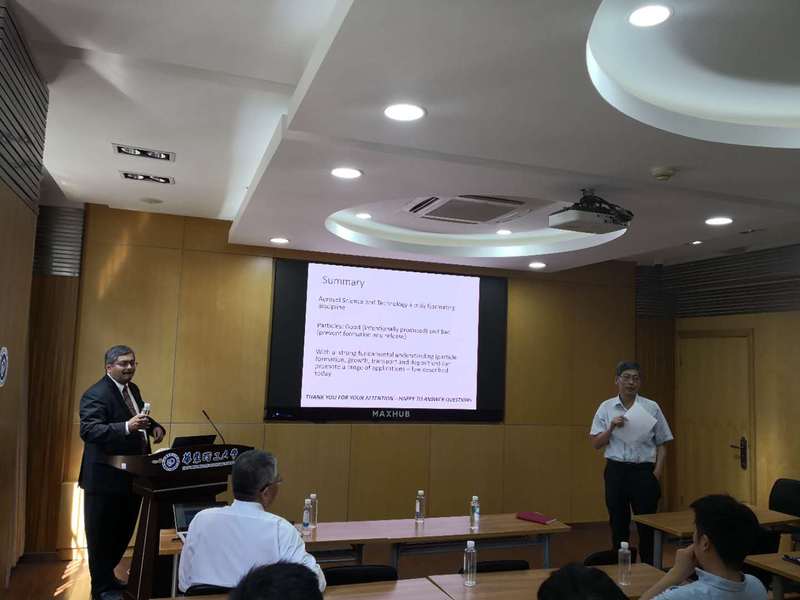 At the invitation of Professor Li Chunzhong, the key laboratory of the Ministry of Education for the preparation and application of ultra-fine materials, Professor Pratim Biswas of Washington University at St. Louis, Academician of the American Academy of Engineering, and Dr. Jiang Yi, President of Corning Reactor Technology Co., Ltd. paid a visit to ECUST for academic exchanges. They delivered two academic reports entitled Nanoparticle aerosol science and technology: applications in energy, environment and medicine and Intrinsically safe micro-chemical technology platform to create high-quality pharmaceutical and fine chemical industries respectively.